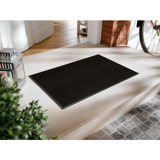 Waschbare Fußmatte in tollen modernen Farben und vielen Einsatzmöglichkeiten im Innen- und Außenbereich. Klassisch einfarbig Schwarz – wählen Sie Ihre passende Größe.