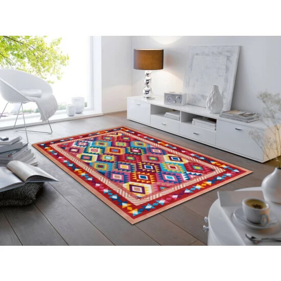 Waschbare Fußmatten & Läufer in farbenfrohen Dessins – Wie kostbare Teppiche in fröhlichen Farben wirken diese modernen Fußmatten und Läufer der Serie “Santa Fe”. Die dekorativen wie praktischen Matten sind nur 0,7 cm hoch, bestehen aus einem robusten Polyamid-Flor, der zuverlässig Nässe und Schmutz aufnimmt und Ihre Böden schützt, und haben einen rutschhemmenden Nitrilgummirücken. Sie sind überaus strapazierfähig und zudem besonders pflegeleicht, denn sie können ganz unkompliziert bei 60°C in der Maschine gewaschen und getrocknet werden. Für Fußbodenheizung geeignet. In 3 Größen erhältlich