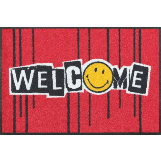 Waschbare Fußmatte mit tollem Motiv und vielen Einsatzmöglichkeiten im Innen- und Außenbereich. Dekorieren Sie Ihren Wohnbereich mit der attraktiven roten Smiley Lizenz Bodenmatte “Welcome Stripes” in wash+dry Qualität von Kleen-Tex Austria. Sie verleihen damit jedem Raum den richtigen Charme und schaffen so eine einladende Wohlfühlatmosphäre.