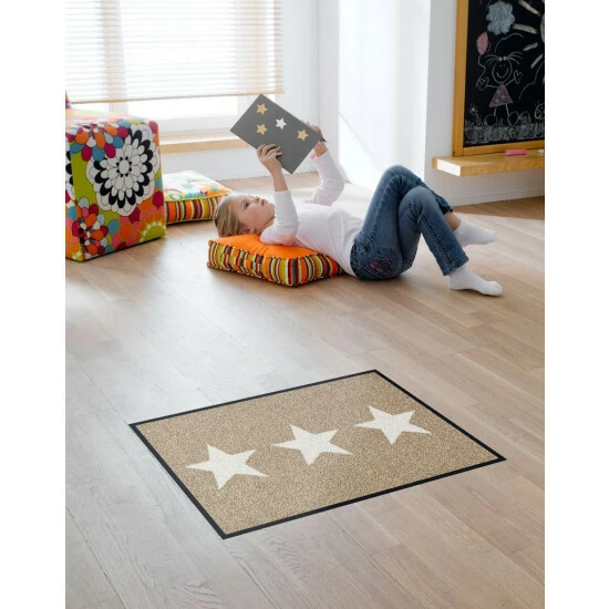 Klassische Fußmatte mit modernen Sterne Motiv in verschiedenen Größen – beige