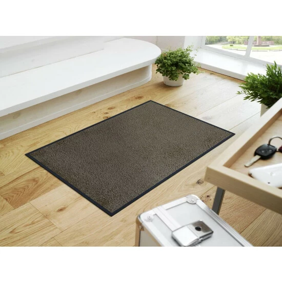 wash+dry Fußmatten besitzen hervorragende Produkteigenschaften. Die uni Schmutzmatten gibt es in vielen praktischen Größen. Sie sind pflegeleicht, robust und langlebig und nehmen Feuchtigkeit und Schmutz sehr gut auf. Gerade auch kleine Steinchen, die Ihre Böden verkratzen, werden gut von den Schmutzmatten aufgenommen. Wählen Sie die Größe der Matte so groß wie möglich, denn je größer, desto mehr Staub und Schmutz kann aufgefangen werden. Wenn die Fußmatte verschmutzt ist, einfach waschen und trocknen und die hochwertige Qualität wieder für lange Zeit nutzen. Waschbare Fußmatten von wash+dry zeichnen sich durch ihre Robustheit, Langlebigkeit und Pflegeleichtigkeit aus. Die Fußmatten von Kleen-Tex/WMK sind absolut rutschsicher auf glatten Böden. Alle Fußmatten besitzen schöne, leuchtende Farben, sind bis 60° C waschbar und trocknergeeignet.