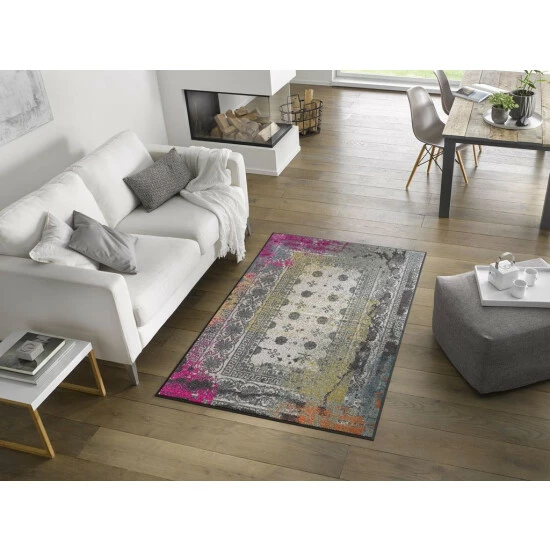 Robust, pflegeleicht und trocknergeeignet – mit rutschhemmender Nitrilgummi-Rückseite – Erinnert an einen n Orientteppich: Das Modell “Taza” überzeugt neben dem wunderschönen detailreichen Design mit bestechenden Farben im trendigen Vintage-Look. Der Teppich ist aber nicht nur optisch ein Blickfang. Zuverlässig nimmt der 0,7 cm flache, dichte Flor aus Polyamid Schmutz und Feuchtigkeit auf. Die rutschhemmende Rückenbeschichtung aus Nitrilgummi sorgt für einen sicheren Halt. Maschinenwaschbar bis 60°C, trockner- sowie fußbodenheizungsgeeignet. In den Größen 75 x 120 cm und 115 x 175 cm erhältlich.