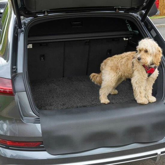 Universell einsetzbare, waschbare Kofferraumschutzmatte – inklusive Ladekantenschutz – Diese praktische “Kleen Car”- Schutzmatte verhindert, dass Einkäufe, nasse Pfoten, Tierhaare, Sportgeräte, Werkzeuge uvm. Ihre Kofferrauminnenauskleidung ruinieren. Der dichte Nylonflor aus recycelten PET-Kunststofffasern nimmt Nässe und Schmutz zuverlässig auf, während der rutschhemmende, PVC-freie Gummirücken das Durchdringen von Flüssigkeiten verhindert. Besonders nützlich ist der per Klettsystem befestigte, abnehmbare und ausrollbare Ladekantenschutz, der Ihre Stoßstange beim Beladen optimal vor Kratzern schützt. Bei Bedarf kann die Matte einfach bei 30°C in der Maschine gewaschen werden. In 2 Größen für gängige Kofferraummodelle erhältlich.