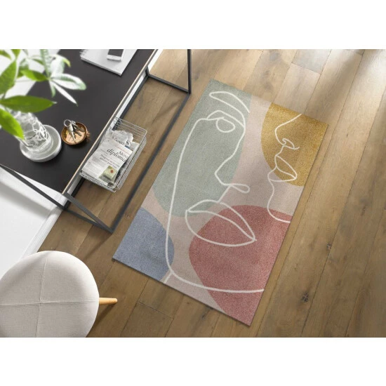 Pflegeleichte Teppiche im expressionistischen Dessin – rutschhemmend, robust & waschbar – Die unverkennbar von den Meisterwerken des Expressionismus inspirierten Teppiche “Modern Faces” werden zum Blickfang in Ihrem Zuhause. Sie vereinen die pflegeleichten Eigenschaften einer Fußmatte mit dem optischen Anspruch eines Designerteppichs. Doch nicht nur optisch überzeugt der Teppich: Zuverlässig nimmt der 0,9 cm flache, dichte Flor aus Polyamid Schmutz und Feuchtigkeit auf. Die rutschhemmende Rückenbeschichtung aus Nitrilgummi sorgt für einen sicheren Halt. Erhältlich in 4 praktischen Größen. Waschbar bis 60°C, fußbodenheizungsgeeignet.