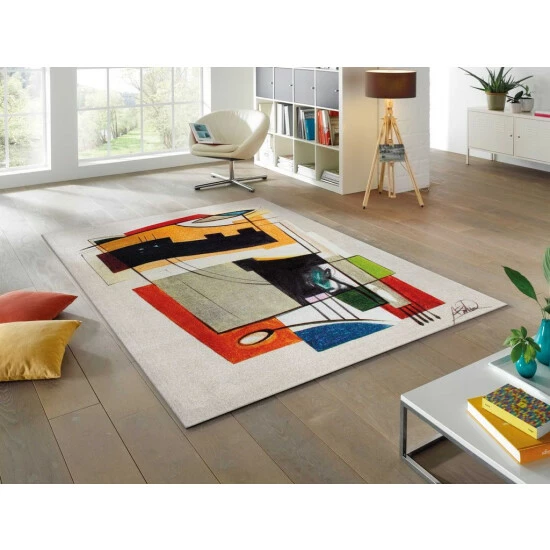 Pflegeleichte Teppiche im farbenintensiven Dessin – rutschhemmend, robust & waschbar – in 4 Größen – Wie zeitgenössische Werke abstrakter Kunst ziehen die Teppiche “Suburban structures” die Blicke auf sich. Dabei vereinen sie die pflegeleichten Eigenschaften einer Fußmatte mit dem optischen Anspruch eines Designerteppichs. Zuverlässig nimmt der 0,9 cm flache, dichte Flor aus Polyamid Schmutz und Feuchtigkeit auf. Die rutschhemmende Rückenbeschichtung aus Nitrilgummi sorgt für einen sicheren Halt. Erhältlich in vier praktischen Größen. Waschbar bis 60°C, für Fußbodenheizung geeignet.
